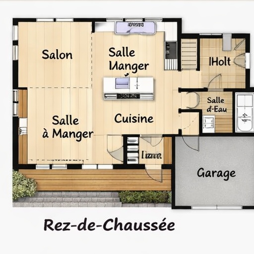 Le cœur du plan maison Farmhouse moderne repose sur la cuisine conviviale. L’îlot central devient un espace rassembleur pour la famille et les invités. Les grandes fenêtres orientées sud ou ouest maximisent les gains solaires passifs durant l’hiver québécois.
